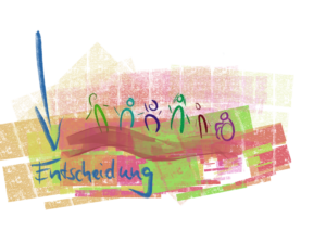 Wenn wir diese „übergeordnete Demokratie“ nun in die Ebene des Alltagslebens in der Kita übersetzen, dann können wir sie vor allem in der Begegnung zwischen gleichwürdigen kleinen und großen Menschen finden und in einer freiwilligen Beteiligung an Entscheidungen, die alle in der Einrichtung betreffen.